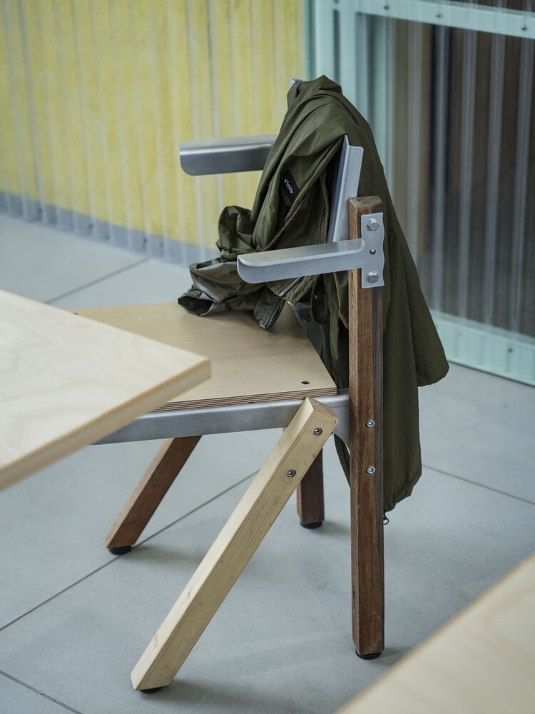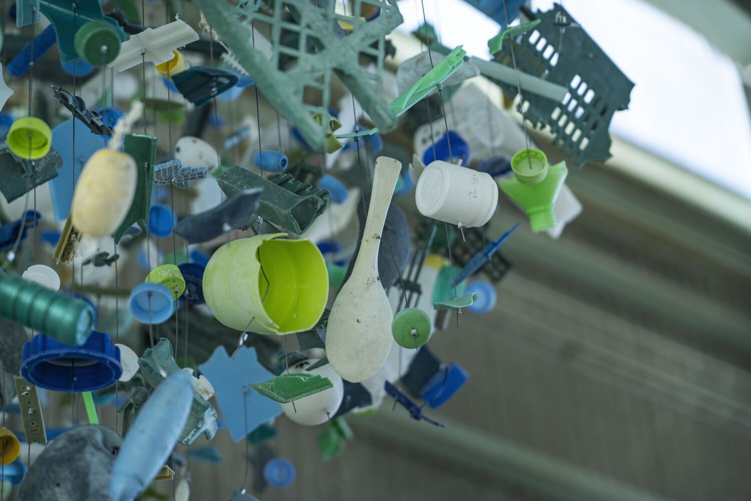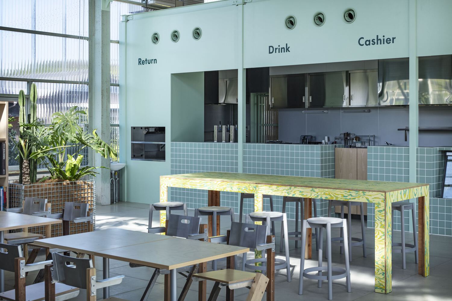 The interior design features furniture and fixtures based on the colour of the existing steel frame. The spherical lighting fixtures suspended from the ceiling are made from recycled marine plastic waste collected from the ocean. Beneath them are chairs jointly created by Dutch artist Sander Wassink and the islanders. This cafeteria has become a new place for communication, where islanders and tourists gather to enjoy the island’s cuisine.