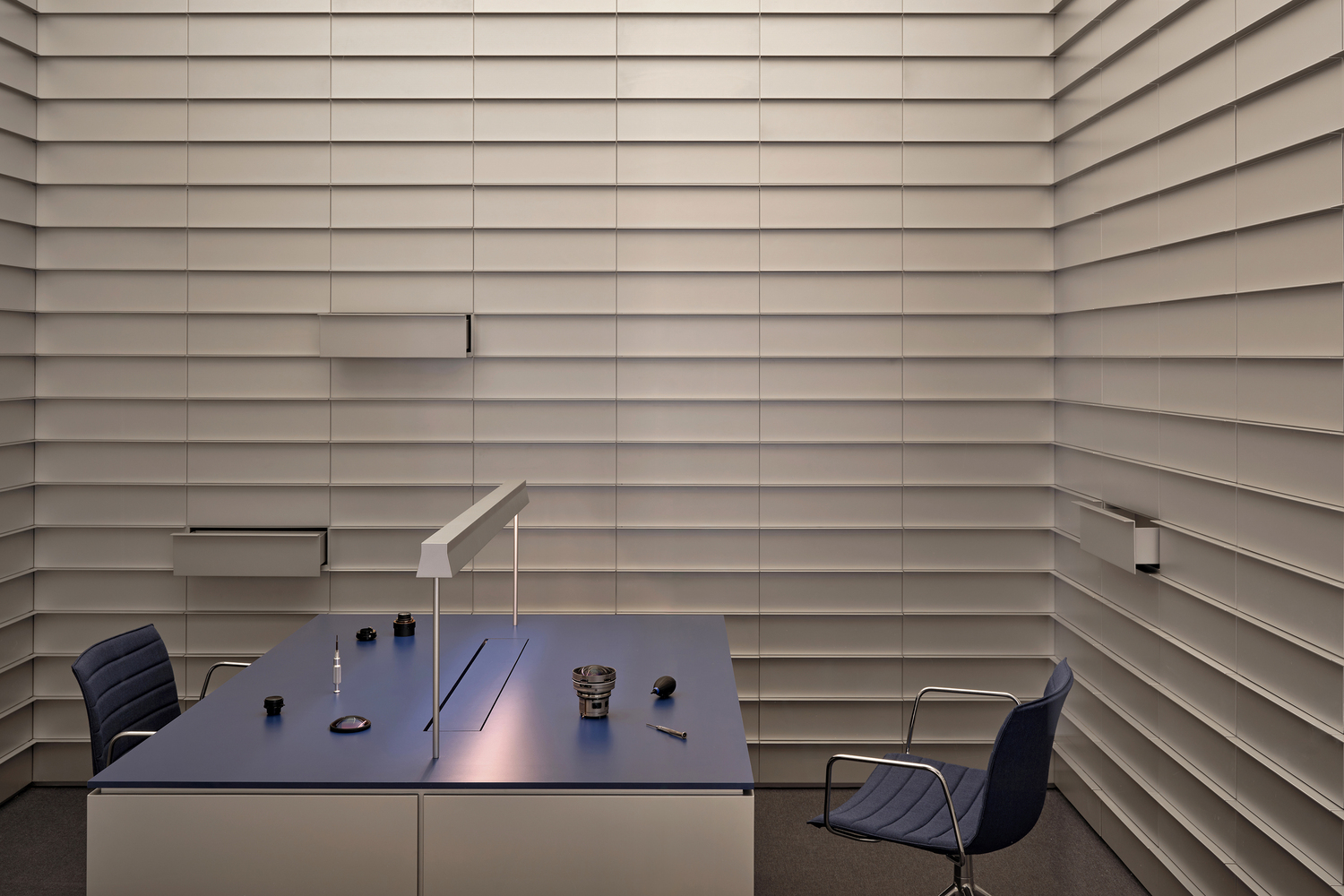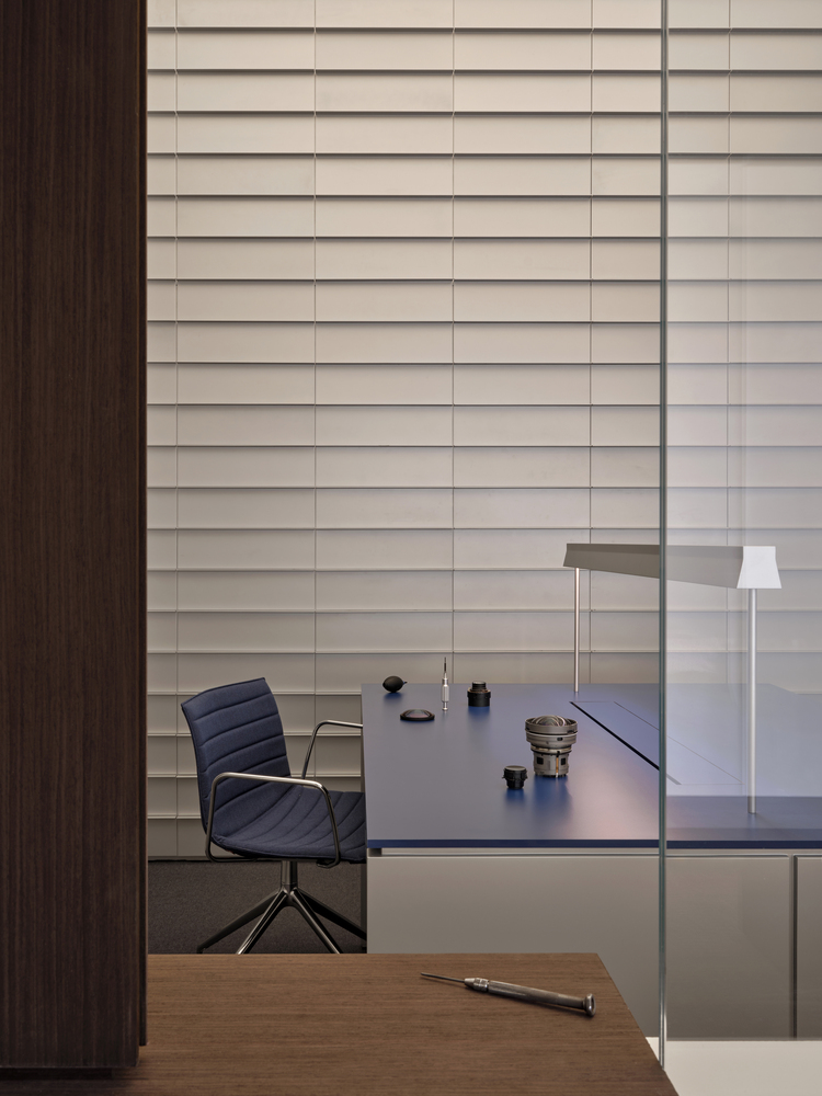 Inside the exhibition hall, Kvadrat Acoustics was applied to the walls, integrating form, function, and acoustic performance to create wide, seamless surfaces and an exceptionally quiet atmosphere. This calm precision responds to SIGMA’s character as a maker of refined optical instruments, and reinforces “The Ways of Crafting” as a pursuit of rigor and craftsmanship.