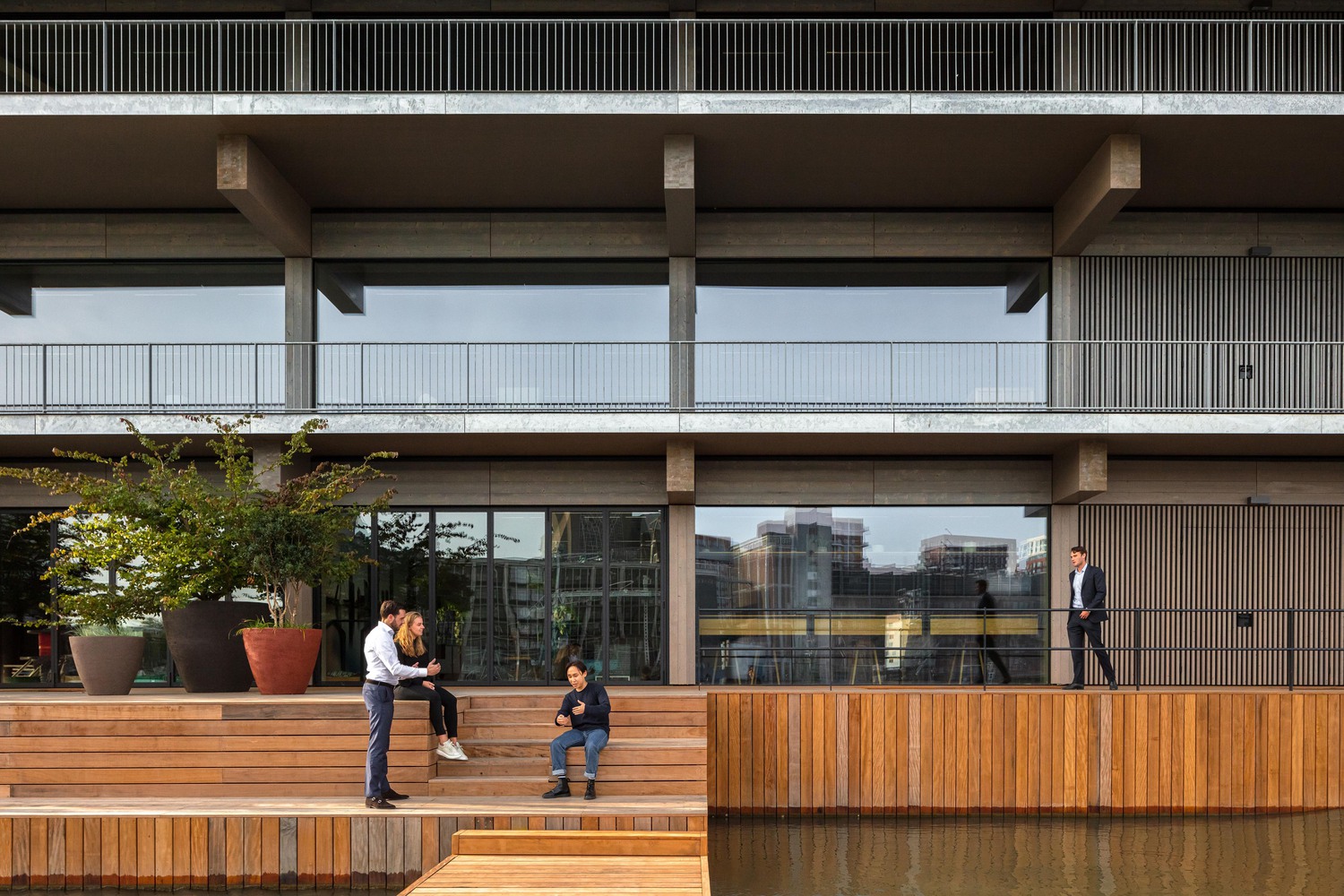 FOR is the largest floating office in the world, and one of the most sustainable offices globally, as well as a pioneer in circular timber workplaces of this scale. The use of wood as a main construction material dramatically reduces the carbon footprint of the building.