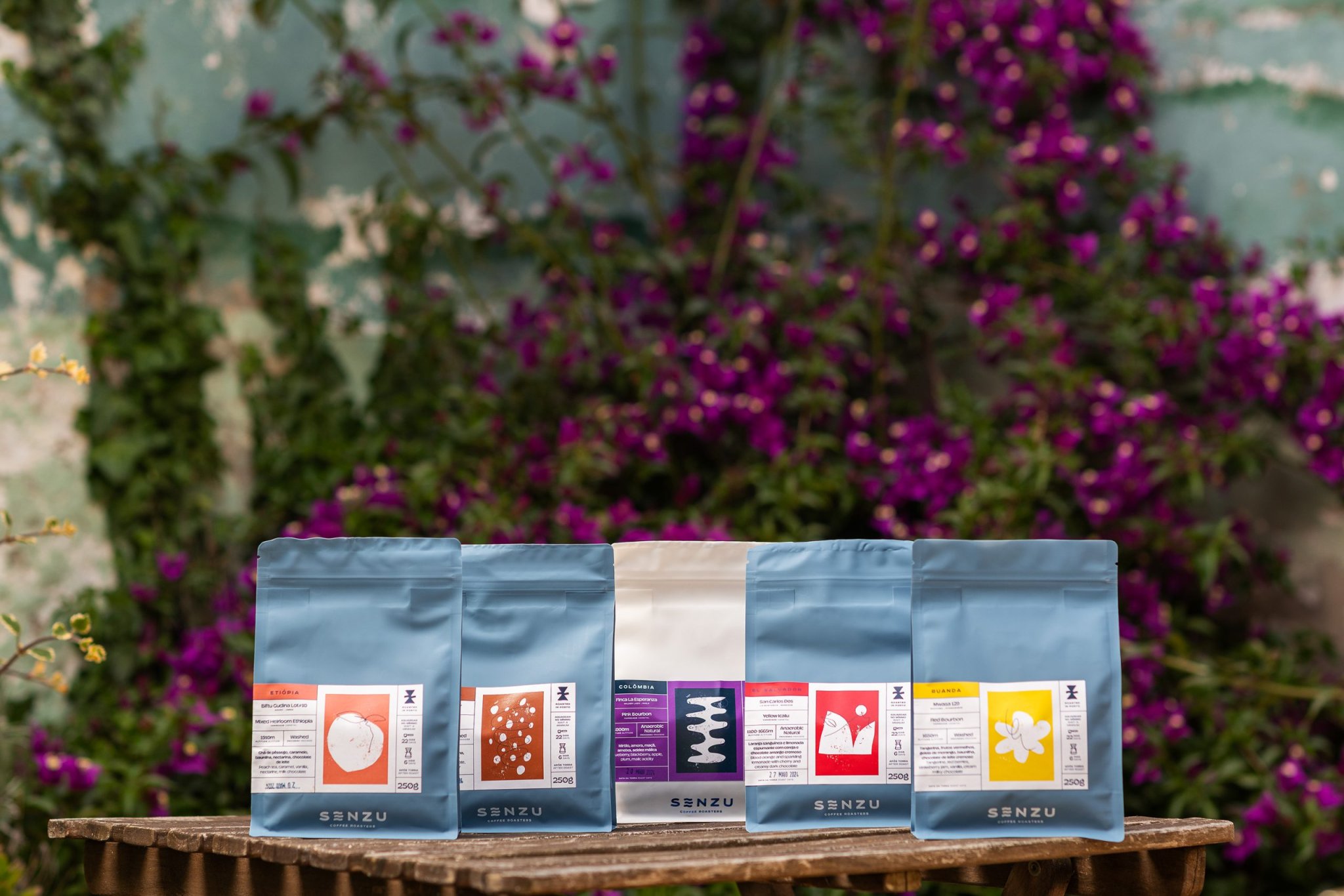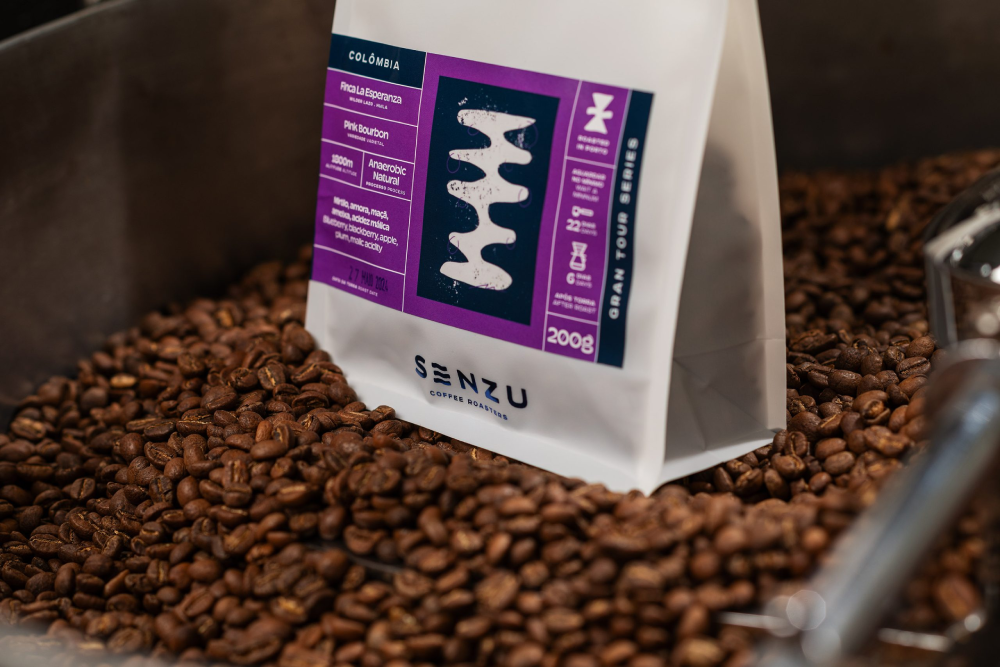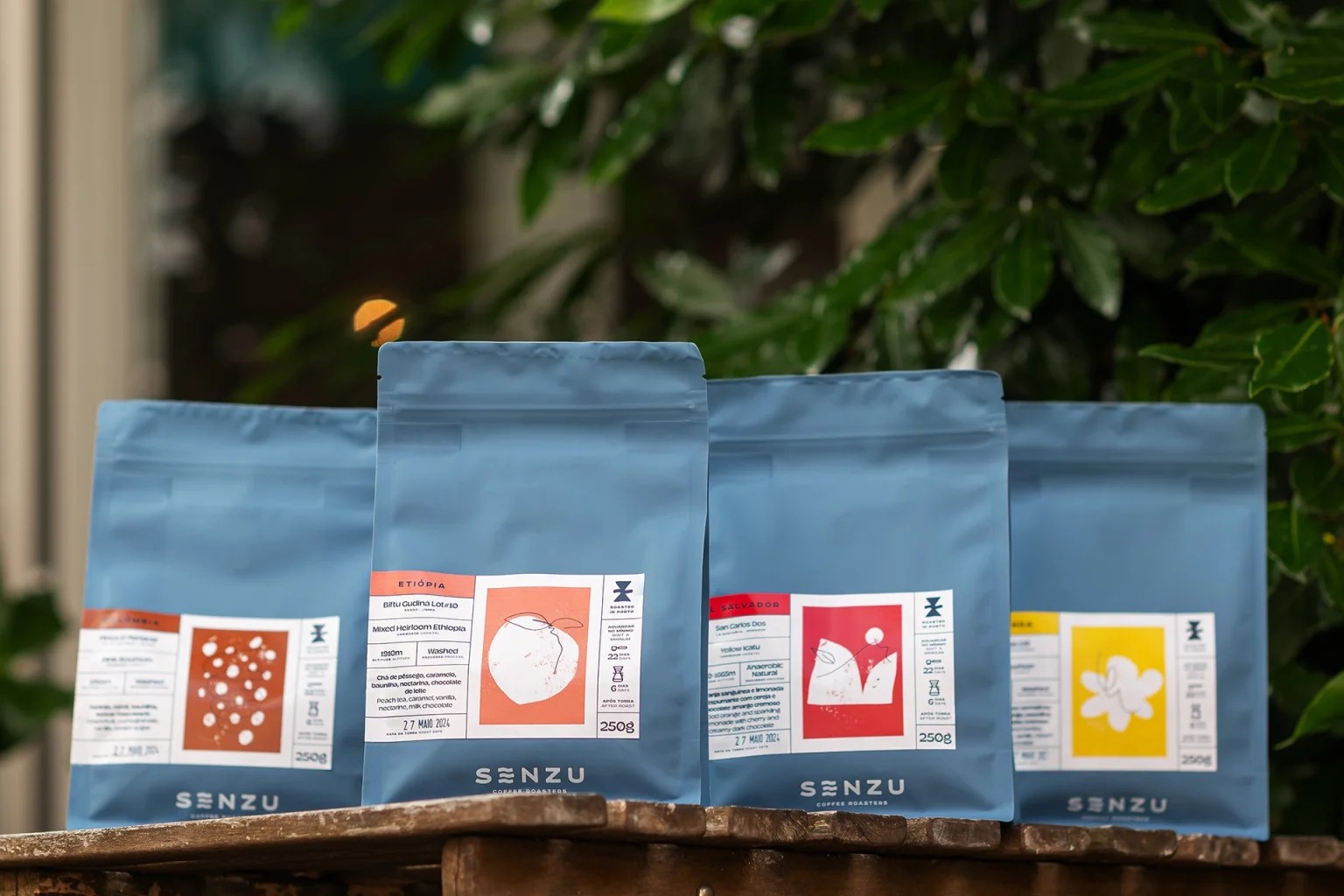 To achieve this, I retained the signature blue color as a bridge to the previous identity, making it a central element of the new branding. A fresh illustration style was introduced, featuring custom artwork for each coffee reference, which also extends to merchandising and other collateral materials. The logo subtly references the three partners embarking on this new journey for SENZU.