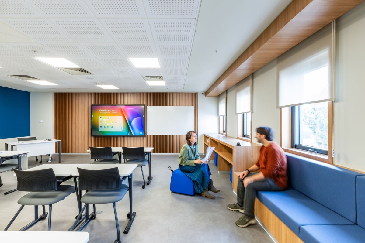 Rather than being organized solely around individual workstations, the office is structured as a network of flexible, comfortable, and inviting spaces that encourage spontaneous encounters, communication, and idea exchange throughout the day. While supporting focused individual work, all spaces within the center are also equipped to enable teamwork, social learning, and both physical and virtual collaboration through informal meeting areas, technological infrastructure, and varied seating arrangements.