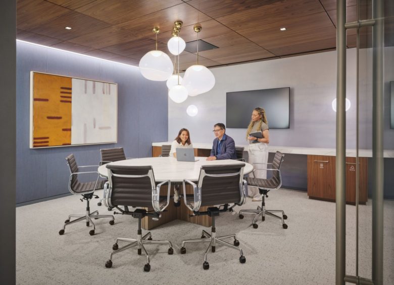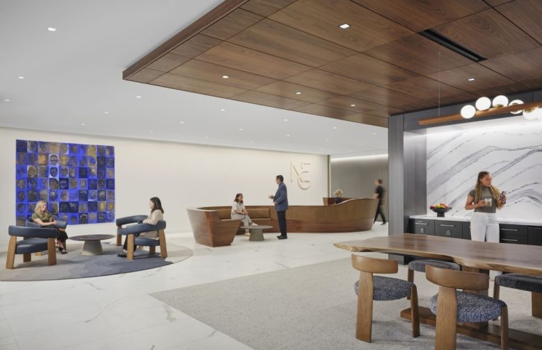 NGE aimed to set a new industry standard for their long-standing legacy of environmental sustainability, a core value of their business philosophy. Therefore, pursuing the most rigorous certification in sustainable design was a key success factor for the project and climate action strategies informed every decision of the design process. Flooring, walls, and finishes are made up of sustainable materials to reduce the carbon footprint. Furniture and finish selections were guided by Gensler’s Product Sustainability (GPS) Standards – performance criteria for the most used, high-impact product categories selected for our architecture and interior projects. NGE also reused, repurposed, or donated a substantial portion of its existing furnishings to Humble Design, a local nonprofit that supports individuals transitioning out of homelessness.